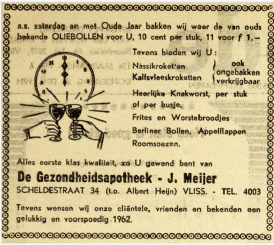 foto boven: De gezondheidsapotheek, stond er boven de toonbank van Meijer’s Frituur in Vlissingen. Op de foto Jan en Mies Meijer. | Fotobron: Vlissingen dronk.