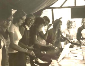 foto boven: Ieder had z’n taak bij het bakken van de pannenkoeken voor vrede. | foto’s privéarchief Johanna Brouwer