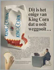 Met dit reclamespotje op tv probeerde de producent van het Zweedse wittebrood van het merk King Corn, de broodfabriek Odekerken Marebos in Brunssum, Nederland eind jaren zestig over te halen om voortaan alleen nog zijn brood te kopen. Want King Corn, zo werd beloofd, was niet alleen heel lekker maar zat bovendien boordevol ijzer, vitaminen, eiwitten en mineralen.